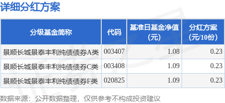 本站消息,12月5日发布《景顺长城景泰丰利纯债债券型证券投资基金分红公告》。本次分红为2025年度第四次分红。公告显示,本次分红的收益分配基准日为12月12日,详细分红方案如下: